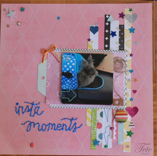 Bueno, aquí llega la entrada más deseada del mes; para empezar os mostramos el sketch que preparó Mrs Díaz Scrap (Aran), en el que era imprescindible utilizar hilos: