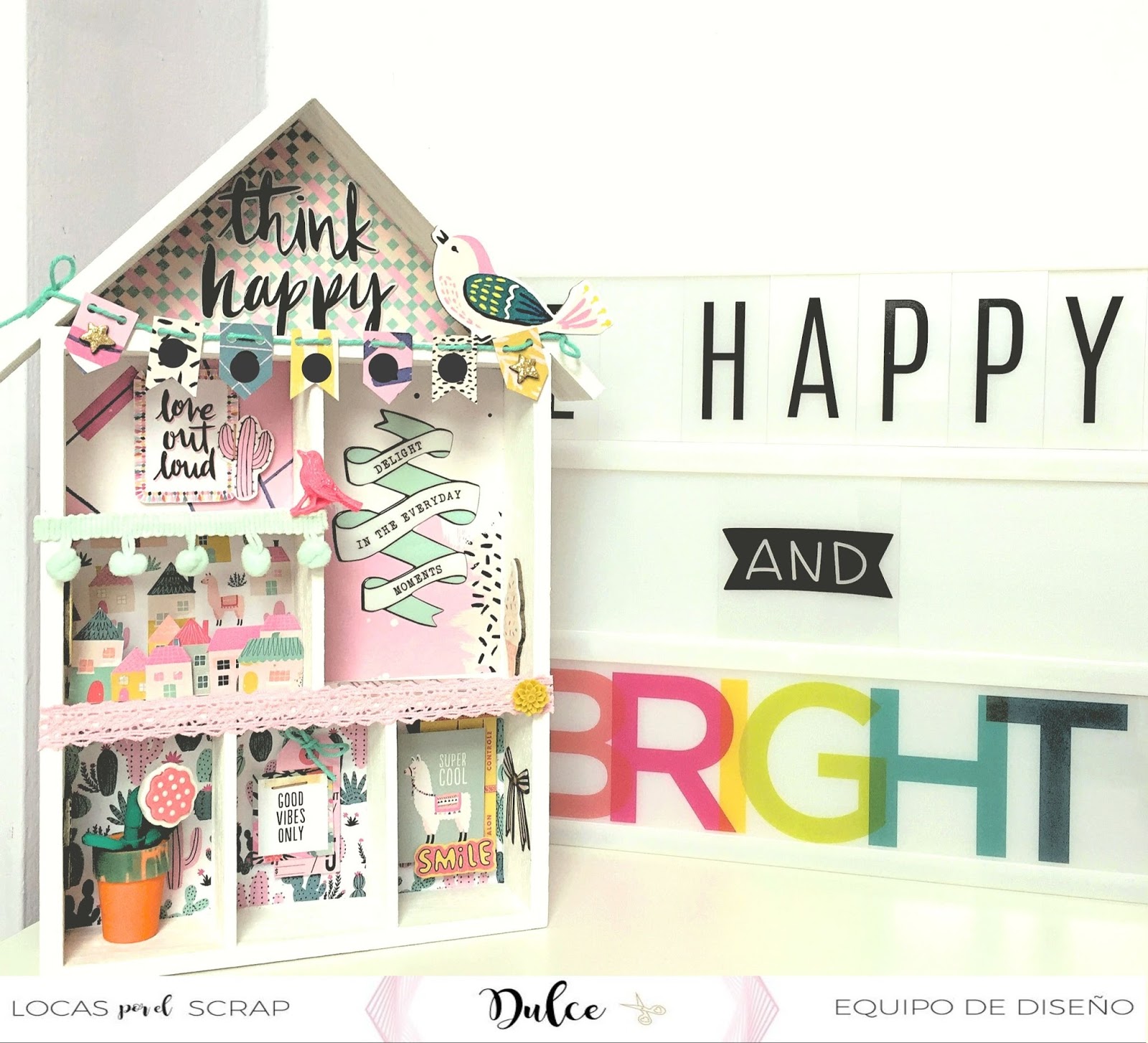 Después de pintar y secar, llegó la parte más divertida. ¡A decorar se ha dicho! Para ello usé fundamentalmente la colección Good Vibes de Crate Paper . Me encantan sus papeles y sus chipboard...