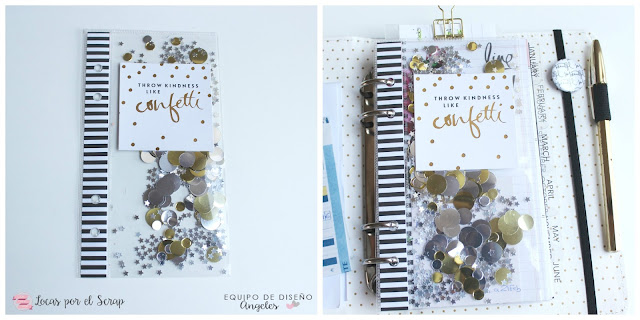 Si vais pasando foto tras foto y creéis que es el momento de darle movimiento al asunto, ha llegado la hora de volver a coger la fuse y hacer un bolsillo SHAKER con cualquier elemento que se os ocurra: lentejuelas, purpurina, conchitas, arena, maderitas...